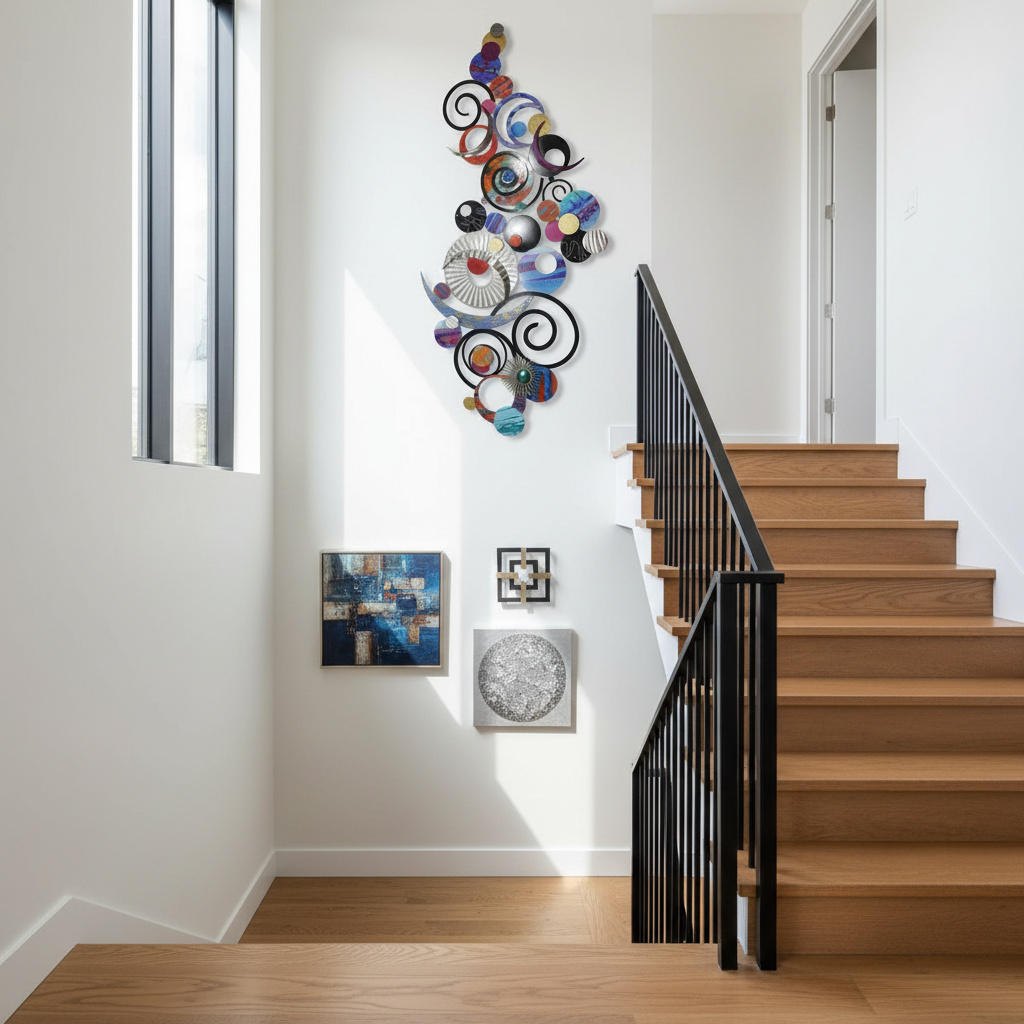 Ideal for minimalist and contemporary interiors, the dynamic design and bold use of colours make it the perfect statement piece, serving as both a focal point and an expression of style. Whether you’re elevating your living room, dining area, or office, Chromatic Circles Cascade embodies the harmony of art and functionality.