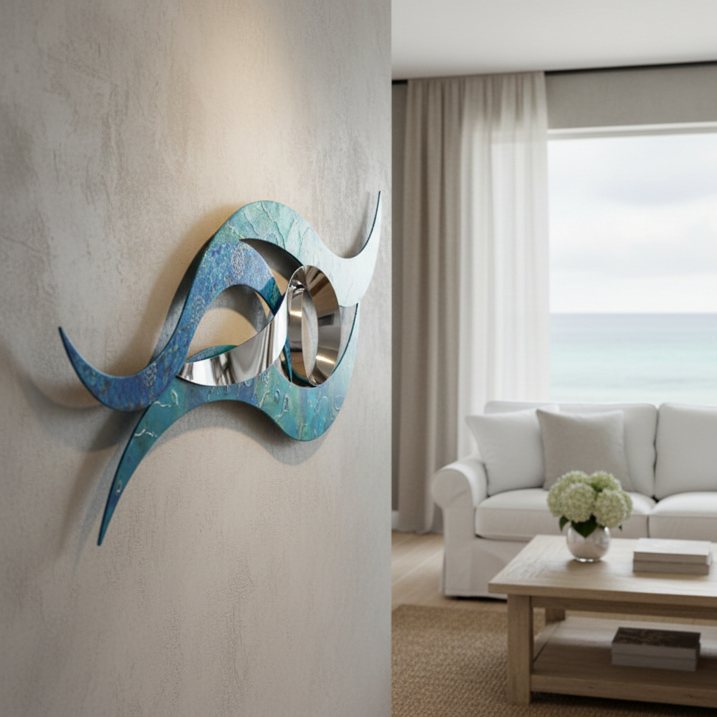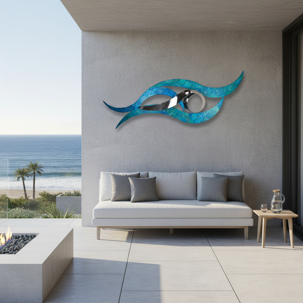 Crafted with love and precision, this stainless steel artwork captures the majesty of ocean waves in vibrant blue, aqua, or natural ripple finishes. Designed for both indoor and outdoor settings, it’s ideal as outdoor coastal wall art, luxurious bathroom wall art, or poolside décor. Its moisture-resistant, durable construction ensures it shimmers beautifully as a 3D focal point in spa bathrooms, modern living spaces, or outdoor entertainment areas.